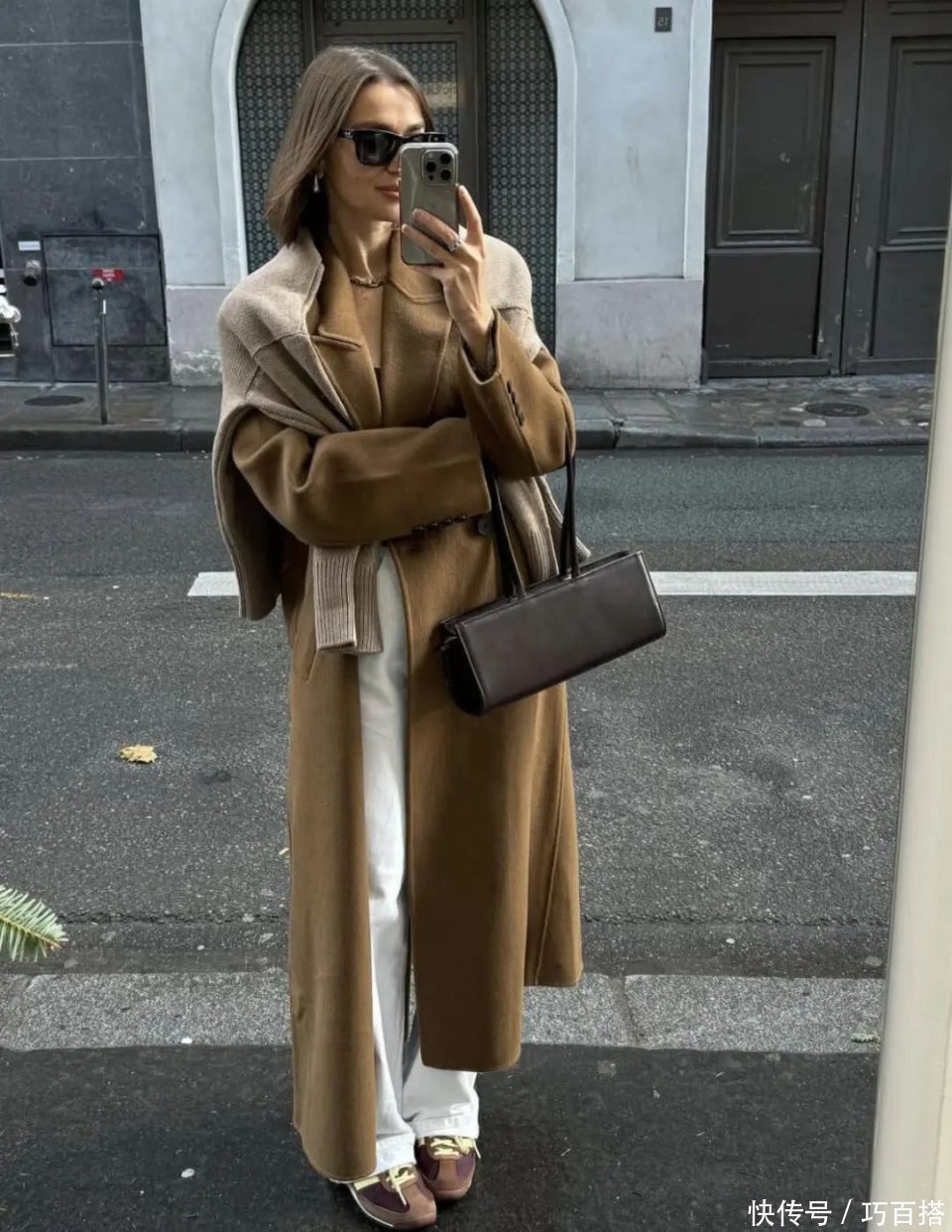 最后,大家也可以尝试老钱风的配色,深咖色和深棕色上身效果复古又前卫,春天搭配牛仔裤外穿,高级感拉满。
