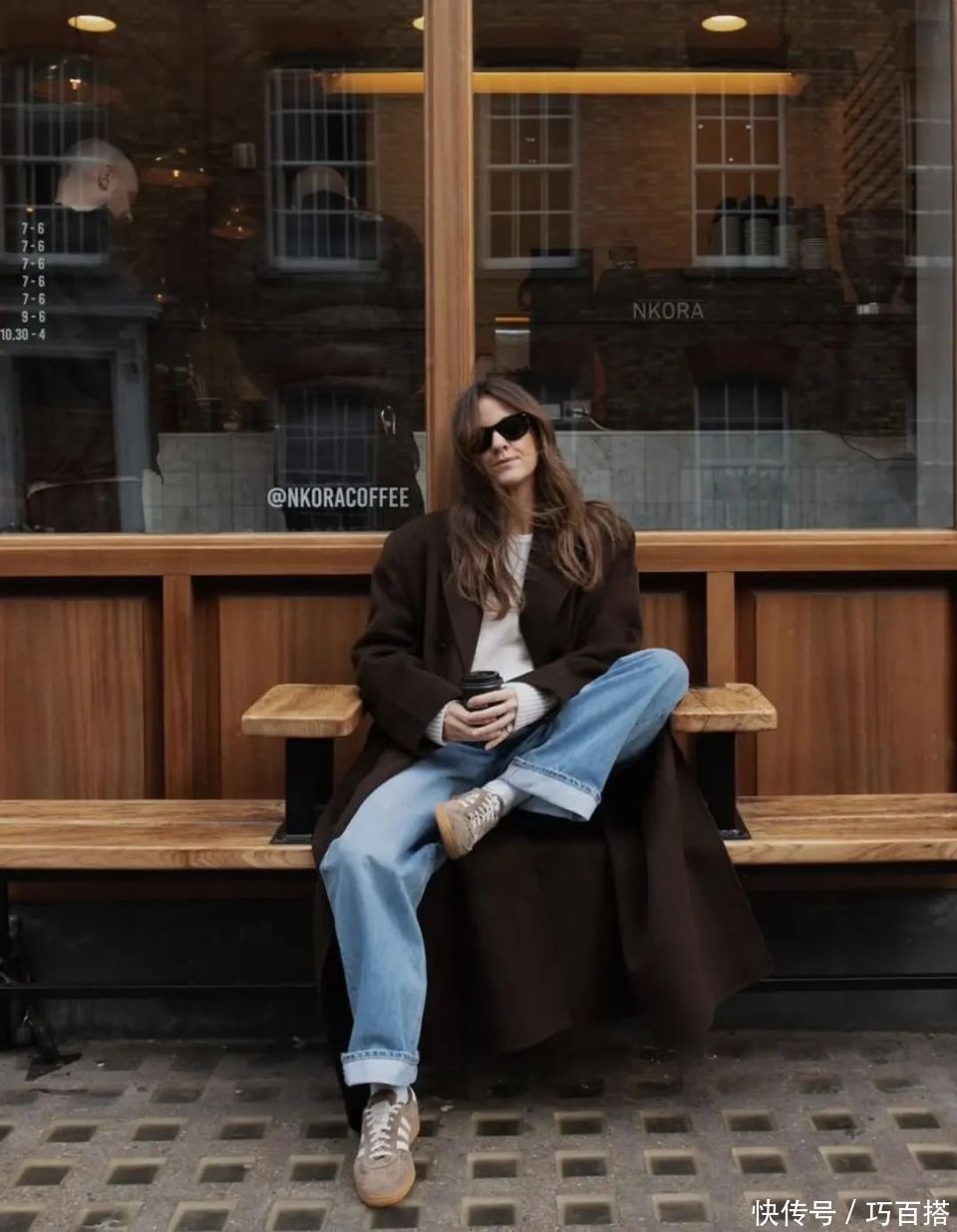 穿搭公式:大衣+牛仔裤+短靴/乐福鞋