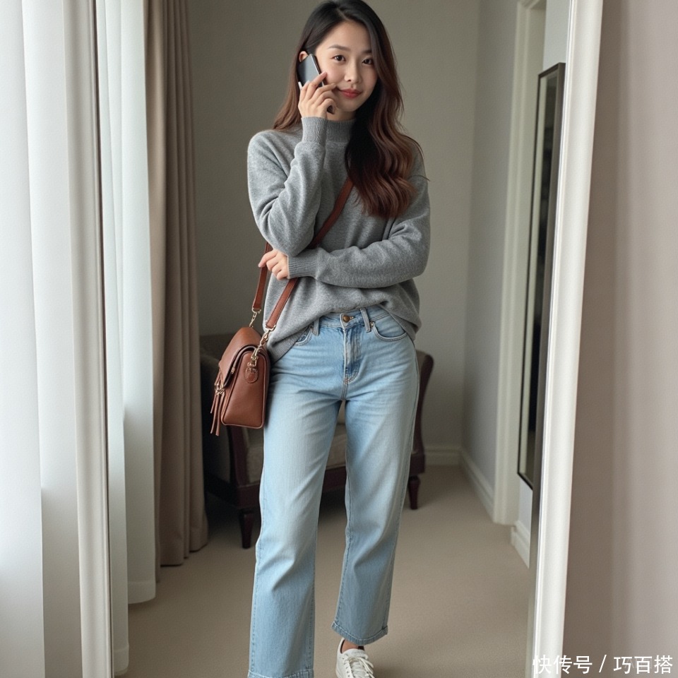 经典款牛仔裤可以和基础色大衣搭配,这其中黑白和深灰上身效果最nice,其次,大家可以尝试春天配色的大衣,比如,粉色、浅蓝、淡紫色等,有辨识度又高级时髦,贼有性价比。
